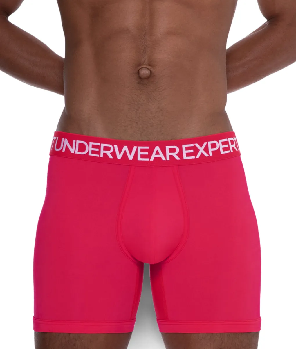 We love bold basics, and this ultra-soft, moisture-resistant polyester boxer brief is a case in point. The mid-rise silhouette does wonders in lengthening the look of your torso while accentuating your lower body. A nicely contoured, two-ply pouch works to hold you in place and keep you there. (Plus, more well-endowed guys will appreciate the stretchiness of polyester down there — no riding up.) This high-quality elastic waistband can keep up, so you can run, cycle, and circuit-train, no problem. “UNDERWEAR EXPERT” lettering brings it all together, all the way around.