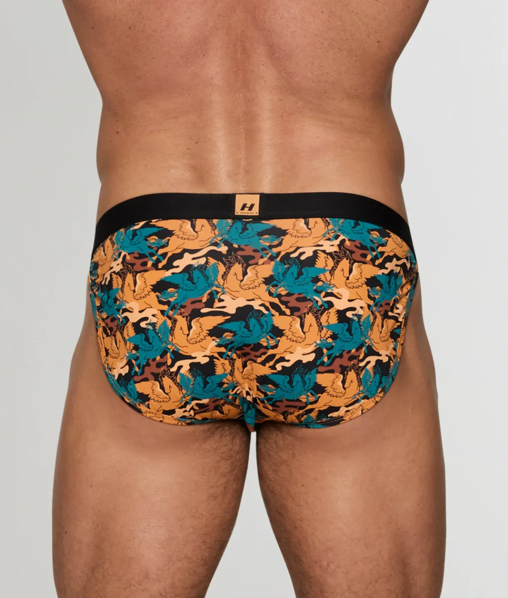 Get ready to elevate your underwear game with the Hunk Pegasus Sport Brief! This low-rise brief offers a sleek fit with a high-cut leg and full back coverage, sitting just below the waist for that perfect modern look. Crafted from soft, breathable fabric, it feels cool against the skin and wicks away moisture, keeping you fresh and comfortable no matter what the day throws at you. The contour pouch provides a natural lift and support, enhanced by bold piping for a standout appearance. The waistband? A no-roll, bold logo design that hugs your waist securely while creating a slimming effect. With contrasting details that add a fun twist, the Hunk Pegasus Sport Brief balances functionality with flair for the perfect everyday essential.