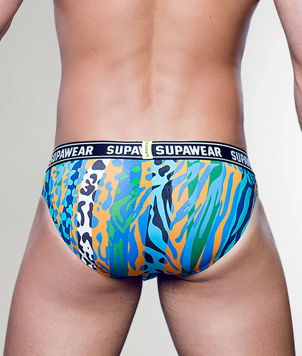 A thick, no-roll waistband featuring bold Supawear lettering delivers a confident, stay-put fit while subtly slimming the waistline and highlighting the brief’s energetic design details.