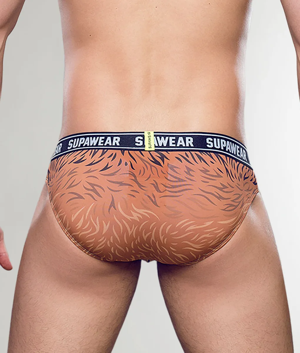 The Supawear POW Brief Grizzly Bear is crafted from a smooth, breathable stretch fabric that feels lightweight and cool to the touch, delivering moisture-wicking freshness that keeps you dry through workouts, long days, or wild nights out. The supportive contour pouch offers natural lift and definition, enhanced with piping that adds structure and a bold, eye-catching look.