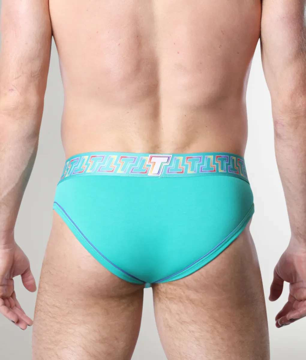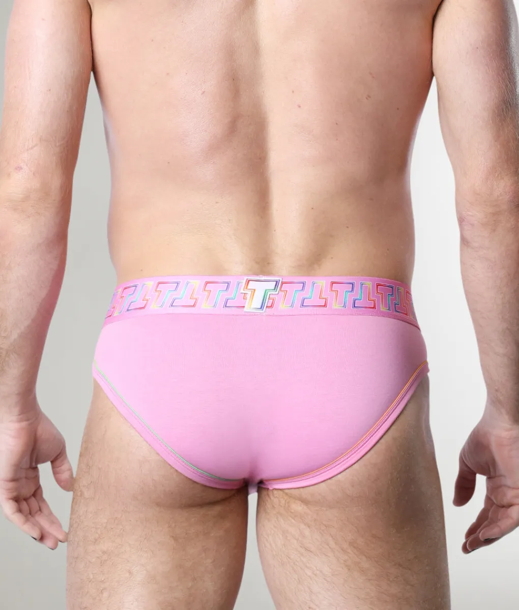Dive into a world of playful comfort with the Timoteo Pride 24 Brief! This low-rise masterpiece sits perfectly on your waistline, offering a flattering fit that accentuates your natural shape. The high-cut leg design provides just the right amount of side coverage while ensuring full coverage in the back, making it a versatile choice for any occasion. Crafted from a premium blend of breathable and moisture-wicking fabric, the underwear feels cool against the skin, keeping you comfortable and dry all day long. The contour pouch features innovative Almost Naked technology, providing gentle support and lift without compromising on comfort. Plus, the no-roll waistband is both thick and slimming, adorned with a bold logo that adds a fun touch to your ensemble. Elevate your underwear game with the Timoteo Pride 24 Brief today!