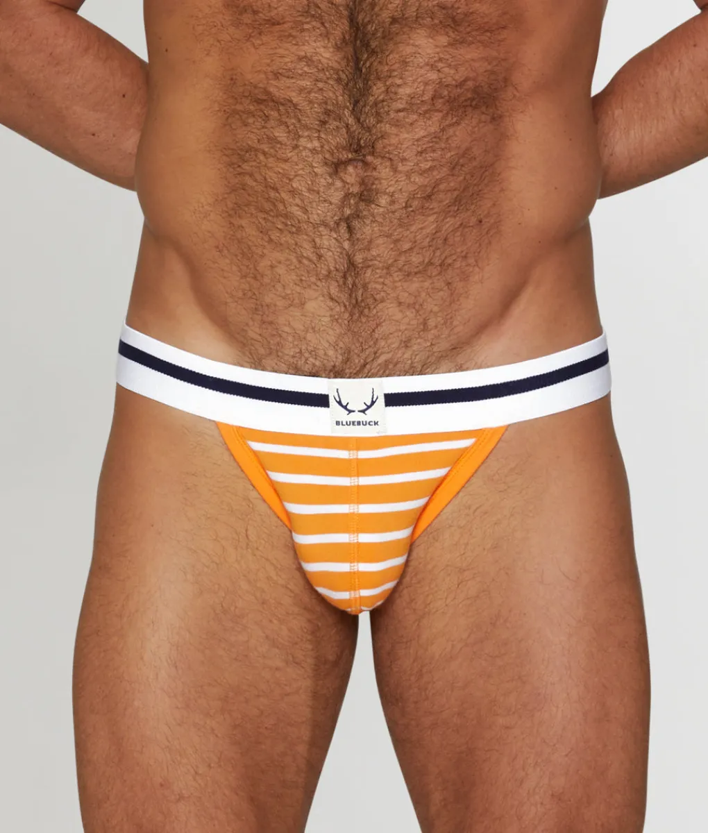 The Bluebuck Nautical Jockstrap is a sporty, preppy twist on a timeless classic, blending bold color contrasts with an athletic fit that frames your best assets.
