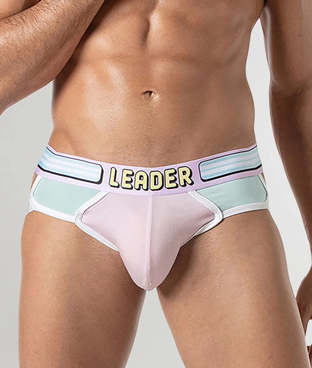 The thick, no-roll waistband features bold logo lettering that adds a sporty edge and stays flat, creating a secure fit that subtly enhances the waistline. With complementary design details throughout, the Leader Candy Jockstrap delivers bold style, confident support, and undeniable fun.