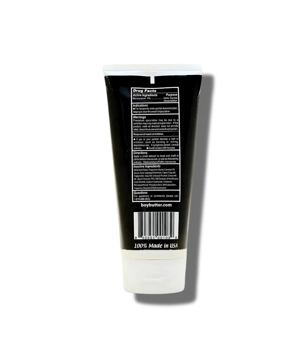 Ready to push your limits? Boy Butter Extreme is a desensitizing lubricant designed to enhance comfort, prolong pleasure, and help manage premature ejaculation. Formulated with 5% Benzocaine, this personal lubricant numbs sensitive areas while maintaining a smooth, creamy texture that’s long-lasting yet washes off easily with water.