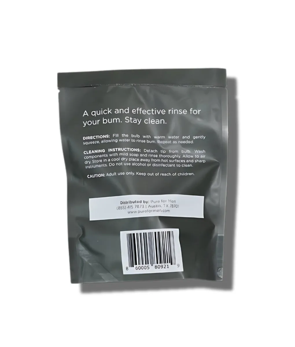 Stay fresh wherever you go with the Pure for Men Bum Bulb, a sleek and compact douche designed for effortless, no-mess prep. Ergonomically shaped for comfort, this bulb features a smooth, detachable rubber tip that makes insertion and cleaning hassle-free. Made from high-quality, body-safe rubber, it’s soft yet durable, free from silicone, phthalates, and BPAs. The squeezable 3-ounce (89mL) capacity bulb allows for controlled water flow, ensuring a quick and effective rinse every time. At 5.4 inches tall and 2.3 inches wide, it fits seamlessly in your gym bag or travel kit, so you’re always ready when the moment calls. To clean, simply detach the tip, wash with mild soap, rinse thoroughly, and air dry. Ships discreetly, because your self-care is nobody else’s business.