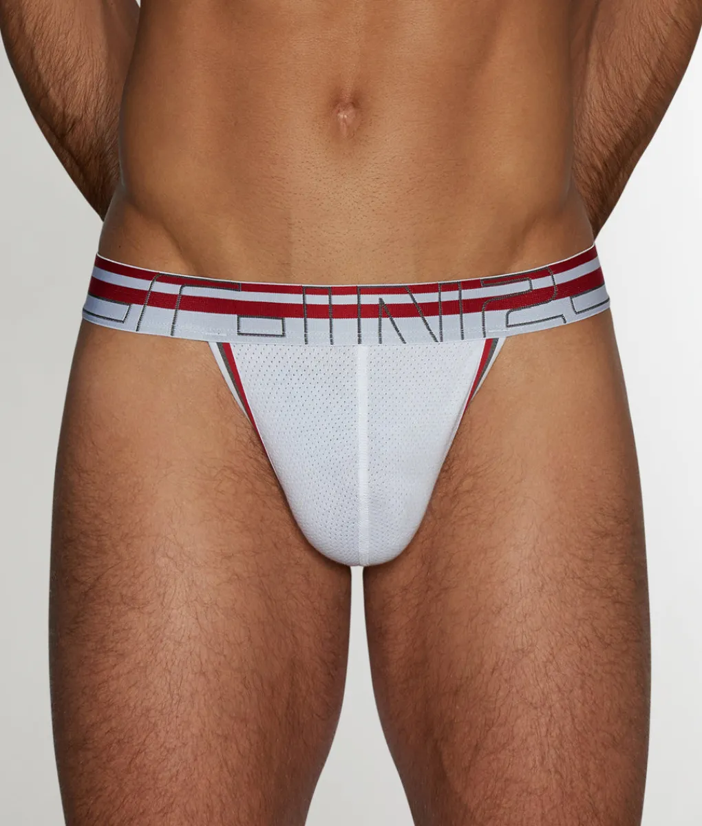 This luxuriously soft thong is light, airy, and breathable. The low-rise fit does a bang-up job of putting your torso on display and letting those V-lines shine. A contoured pouch keeps your manhood supported and in place while all-over perforated mesh provides ventilation, so you can tackle that bootcamp-style workout with utter confidence. One elastic waistband brings it all together, and with a striking three-tone colorway to boot.