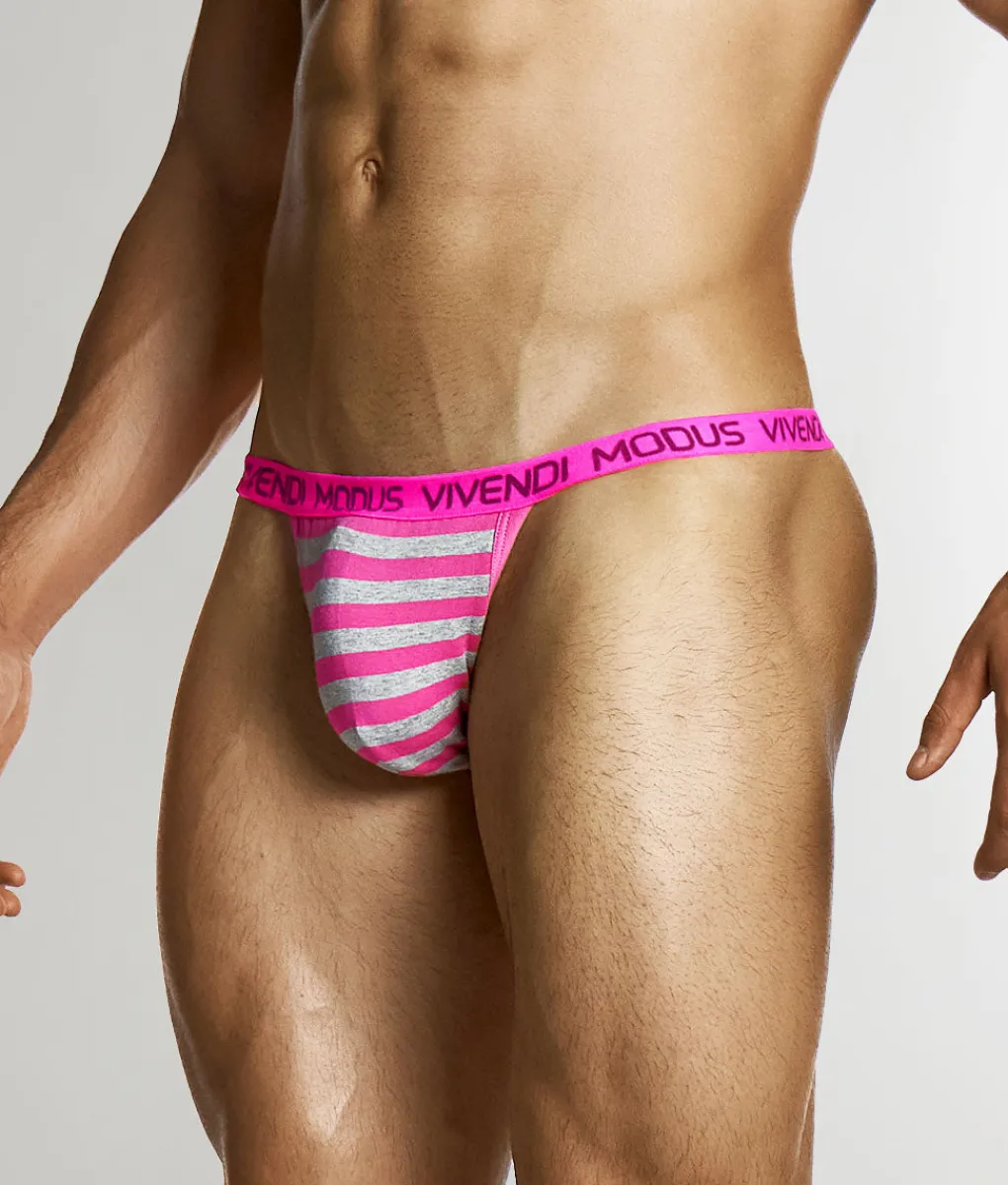 The Modus Vivendi Eighties Thong is a throwback with attitude—revamped for today’s comfort-loving, style-savvy wearer. Designed with a low-rise cut, it sits provocatively below the waistline for an ultra-modern silhouette. It features a minimal front panel and a thong back strap that’s thin but supportive, sculpting the backside with just the right snap. Crafted from smooth, elasticated cotton with elastane, this upcycled fabric is part of Modus Vivendi’s sustainable Responsibility Edit—so it feels good on your conscience and even better on your skin. The fabric is cool, breathable, and has a soft stretch that hugs without squeezing, perfect for all-day wear. The pouch is subtly contoured for a naturally enhanced fit—no fly, no gimmicks, just effortless shape. A narrow waistband with a printed logo adds a sleek edge, without rolling or cutting in, giving a slimming effect across the hips. Complementary monochromatic design elements give the Modus Vivendi Eighties Thong a clean, bold finish that lets the retro inspiration shine.