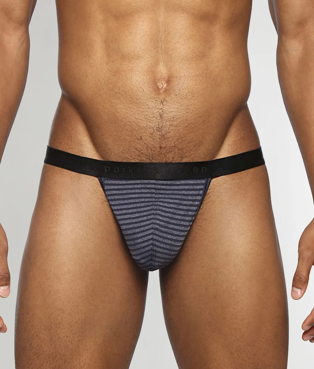 Contrasting stripe accents add an eye-catching finish, giving the Parke & Ronen Vault Stripe Thong a stylish, athletic-inspired aesthetic that stands out in any underwear collection.
