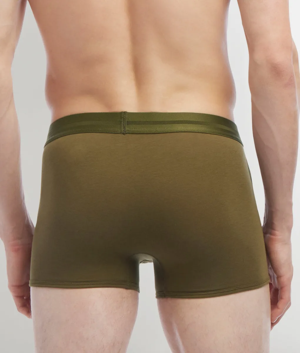 The contoured pouch provides structured support while maintaining a natural feel, keeping everything comfortably in place. No-fly design means a seamless fit, eliminating bulk and unnecessary adjustments. The no-roll waistband features a bold yet refined logo detail, ensuring a secure grip that won’t dig in or lose shape. High-cut legs provide freedom of movement, making these trunks ideal for all-day wear, whether you’re lounging or on the go.