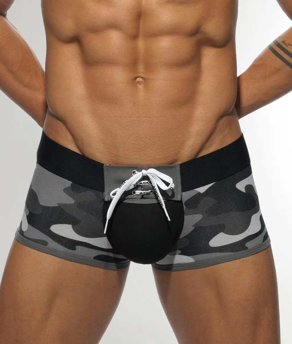 Discover the ultimate blend of comfort and style with the Addicted Tie-up Trunk, designed for those who appreciate a playful twist in their underwear drawer. This mid-rise trunk sits comfortably on your waistline, providing just the right amount of coverage with high-cut legs and a full-coverage back. Crafted from a premium blend of breathable and moisture-wicking mesh fabric, it feels cool to the touch against your skin, ensuring you stay fresh all day long. The contour pouch, featuring a built-in cock-ring and Almost Naked technology, offers a gentle lift while maintaining a snug fit. The slimming waistband, designed to prevent roll-down, is adorned with subtle logo detailing that adds a hint of flair without being overpowering. The Addicted Tie-up Trunk is perfect for those who want a comfortable yet stylish option for everyday wear.