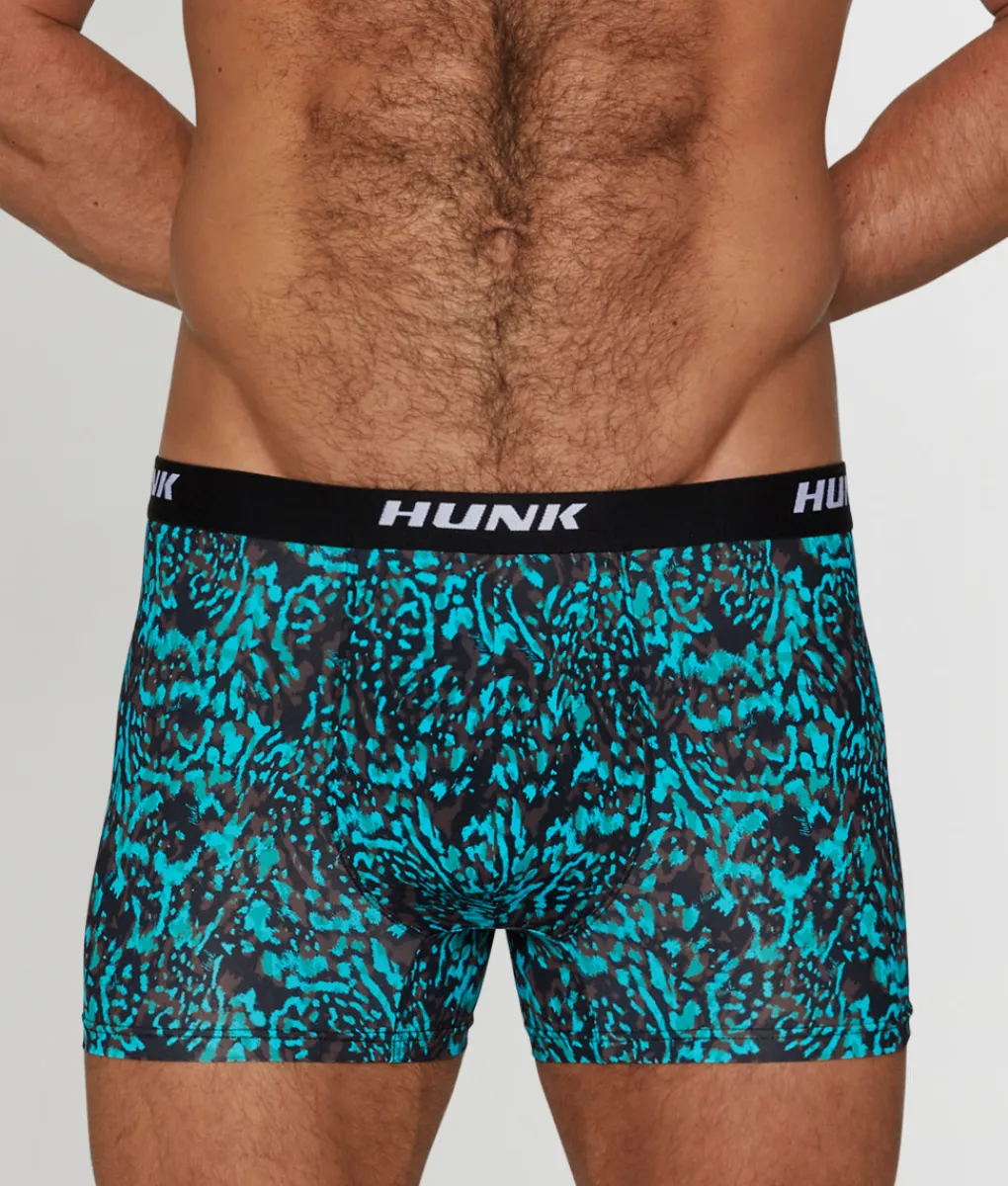 Lightweight, flexible, and surprisingly strong, this trunk is a lot like the big cats its design takes inspiration from. The low-rise cut you know and love lengthens the look of your torso and leaves little to the imagination — just the way we like it. Stitched down its center, a no-fly, two-ply pouch keeps your manhood cool, calm, and collected, so you can tackle that HIIT workout, no sweat. (Plus, your member gets some natural, flattering-looking lift.) Up top, you’ve got a two-tone, 30 mm. elastic waistband with “HUNK” lettering all the way around, plus a tiny branded patch out back.