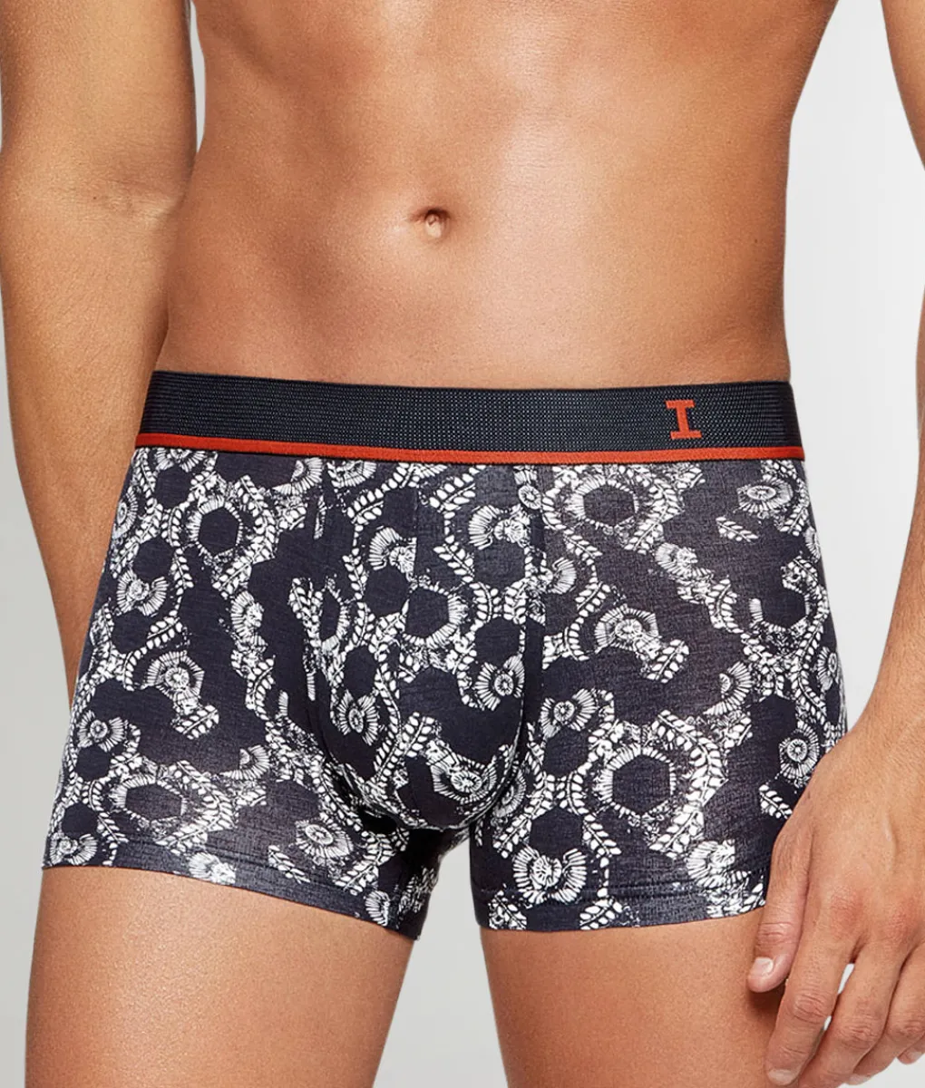 This lusciously soft cotton-modal trunk is easy on the eyes and even easier on your skin. You’ve got a mid-rise silhouette that shows off just enough of your V-lines to reel ‘em in closer, plus a stretchy multi-tone elastic waistband with Impetus’ standard minimal branding. A contoured pouch holds the boys comfortably in place no matter where life takes you, and enhances the look of your manhood in the process. On the body, you’ve got a black-and-what pattern that lives up to its name.