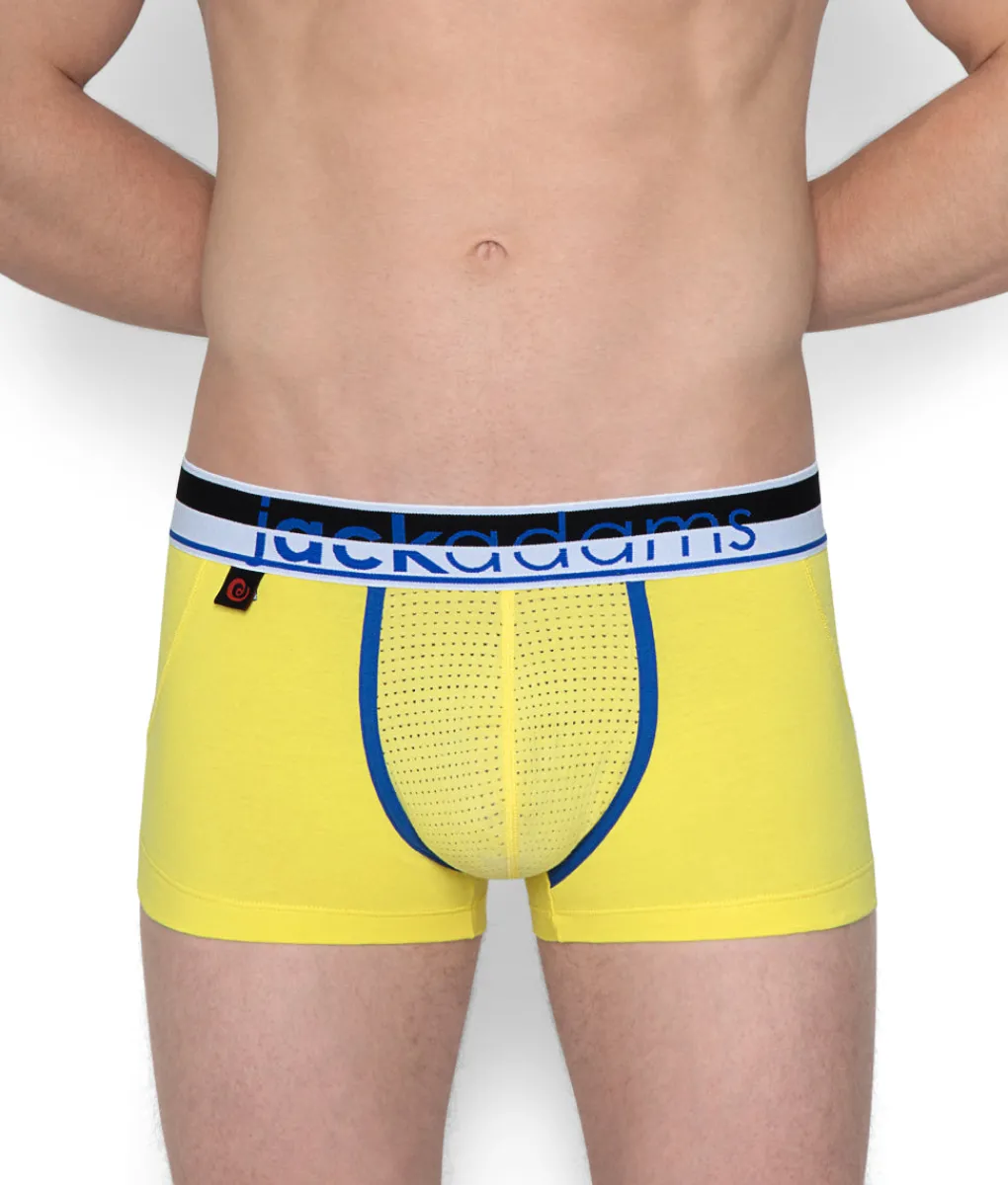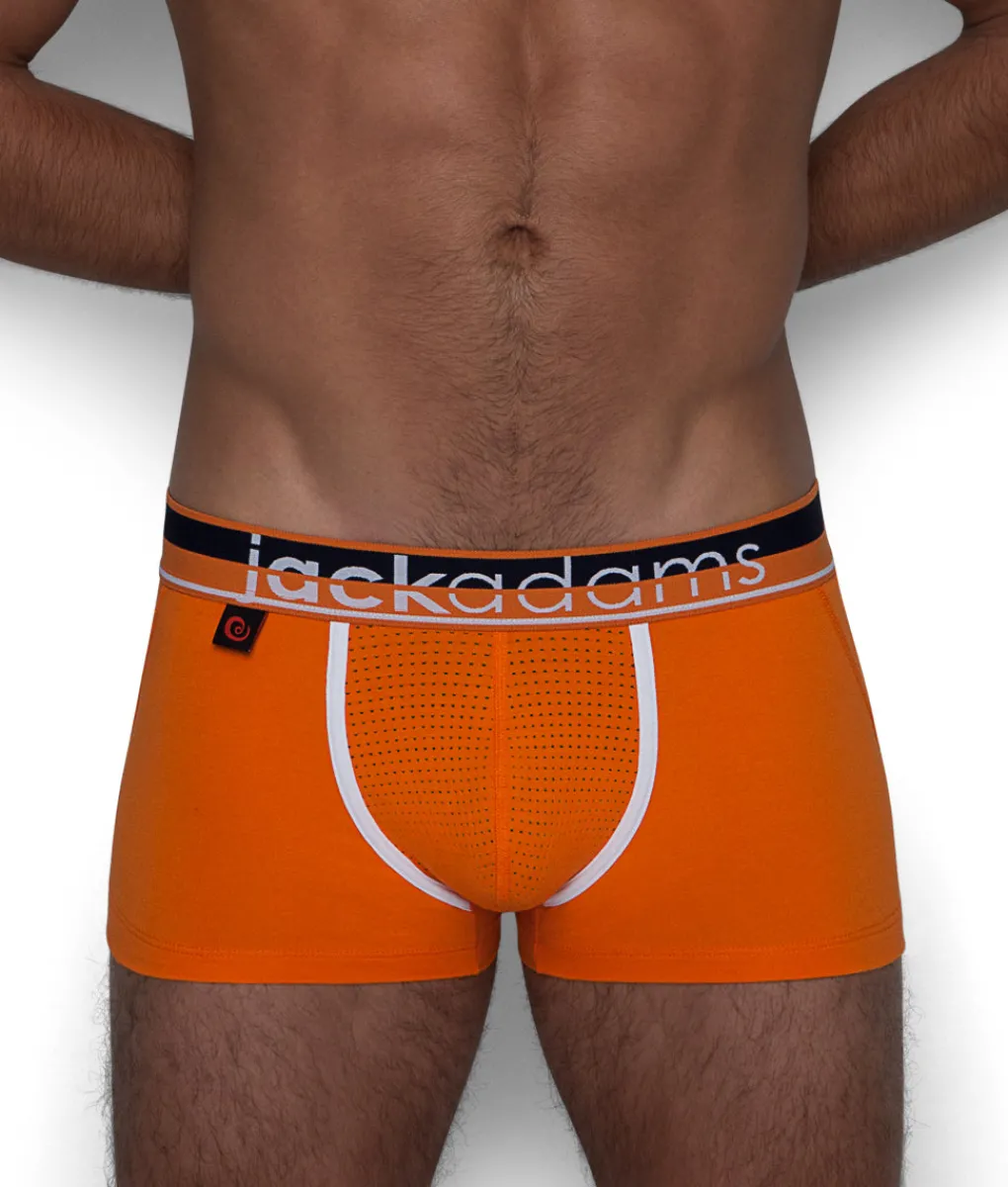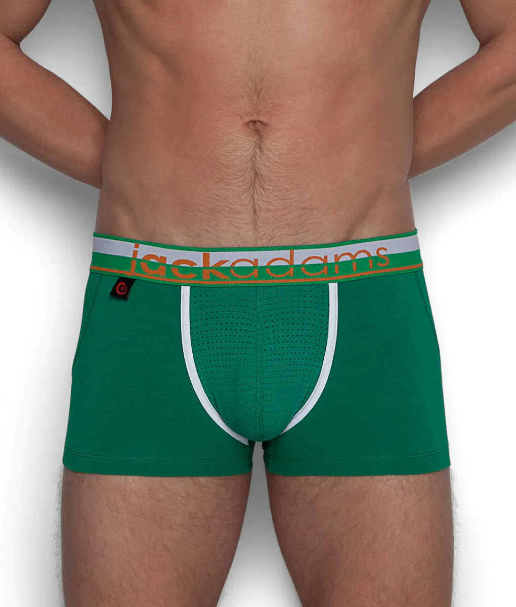 The Jack Adams Game On Trunk is one that allows for increased support and comfort, but maximum feel. Featuring a Cotton/Elastane blend and low-rise, the Game On Trunk fits like a glove. And thanks to a perforated mesh pouch and back-panel, the Game On Trunk’s breathability is something incomparable. Available in a variety of vivid colors with individualized contrasting piping and complementing waistbands, the Game On Trunk is a fun and flirty pair of trunks.