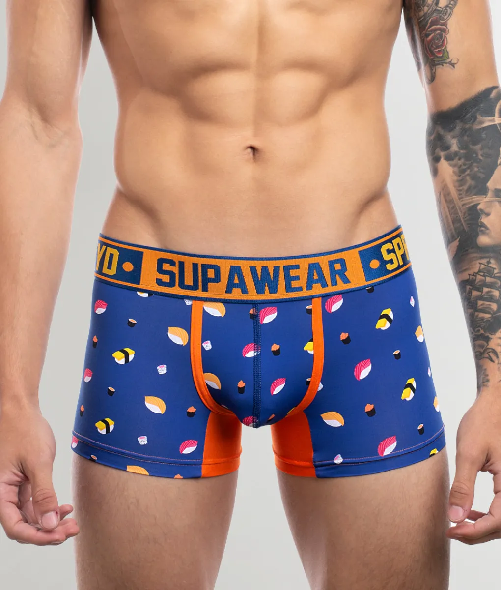 Get ready to sprint into bold style and cheeky comfort with the Supawear Sprint Trunk, the ultimate power-up for your underwear drawer! Designed with a snug, low-rise fit that sits just below the natural waistline, these trunks feature a shorter inseam (approximately 2–2.5 inches) and a body-hugging silhouette that offers moderate thigh coverage and full back coverage. The fabric is a high-performance blend engineered for breathability, sweat-wicking, and next-to-skin softness, keeping you cool and dry no matter the heat.