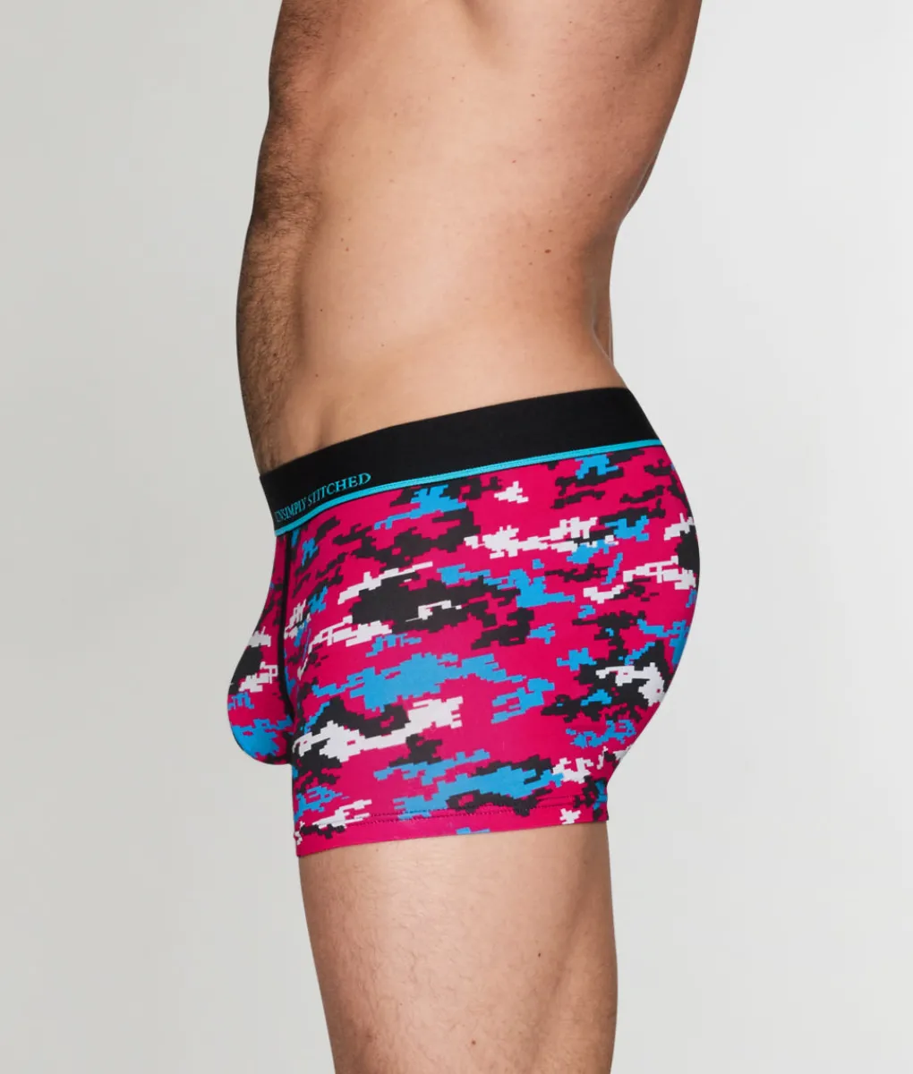 Introducing the Unsimply Stitched Digital Camo Trunk, the perfect blend of style and comfort for the modern man! This mid-rise trunk offers a stylishly laid-back fit that sits comfortably on the waistline, featuring a high-cut leg design for full coverage in the back, ensuring you feel confident and supported throughout your day. Crafted from a premium, breathable fabric, the Unsimply Stitched Digital Camo Trunk is cool to the touch and excels in moisture-wicking technology, keeping you feeling fresh and dry no matter the occasion. The contour pouch is designed with a built-in lift feature that not only enhances your profile but also includes thoughtful elements for added comfort. The sleek waistband is thick yet no-roll, adorned with subtle logo detailing that adds a touch of flair without being overpowering. With its playful digital camo print, this trunk is sure to become your new go-to!