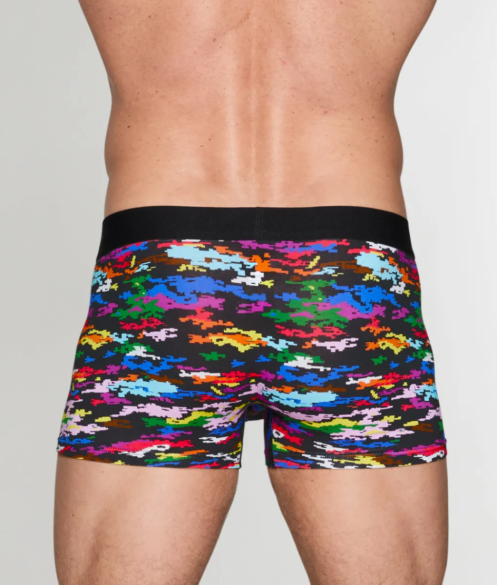 Show off your unique style with the Unsimply Stitched Pride Digital Camo Trunk! This mid-rise trunk sits comfortably on the waist, featuring a high-cut leg and full-coverage back that provide the perfect balance of support and freedom. Made from a premium, breathable fabric, it feels soft against the skin while efficiently wicking away moisture to keep you feeling fresh all day long. The contour pouch offers exceptional lift and support, utilizing innovative technology for a fit that’s both comfortable and flattering. With a thick, no-roll waistband subtly adorned with a logo, this trunk ensures everything stays in place while enhancing your silhouette. Bring a bold twist to your collection with the Unsimply Stitched Pride Digital Camo Trunk!