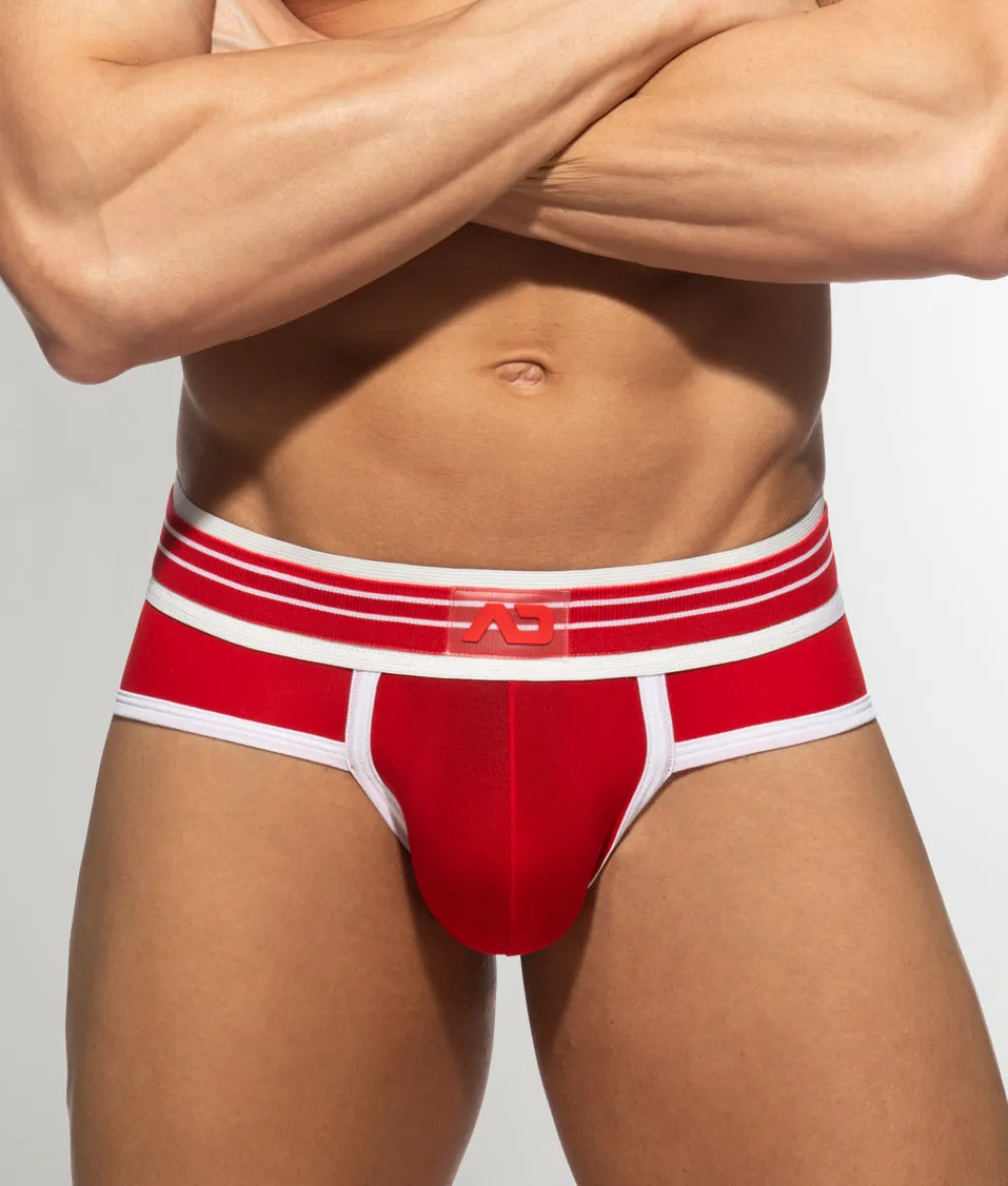 With a sporty-meets-sexy aesthetic, these briefs boast bold racing stripes along the waistband, pouch, and leg hems because speed and style should always go hand in hand. A thick, ultra-stretchy waistband ensures a secure yet ultra-comfortable fit, while the spacious front pouch provides all-day support and a flattering boost. Finished with a silicone AD logo, these briefs are a perfect blend of bold, functional, and effortlessly seductive.