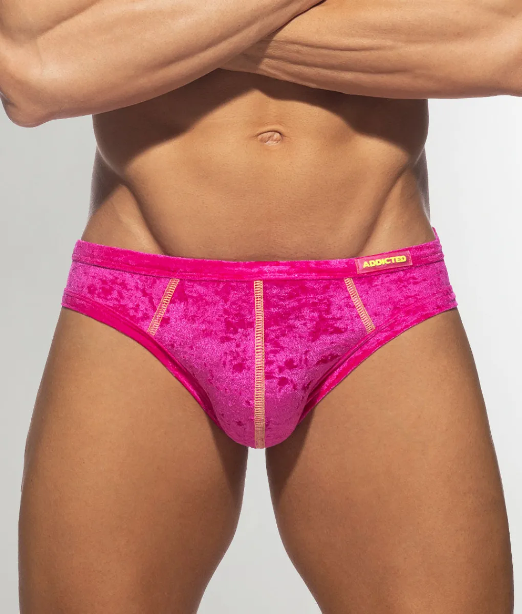 Turn up the luxury with the Addicted Velvet Shady Bikini Brief, a show-stopping piece that combines sultry texture with everyday comfort. This mid-rise brief sits naturally on the waistline and features high-cut legs that elongate your silhouette while offering moderate back coverage for a sleek, body-hugging fit.