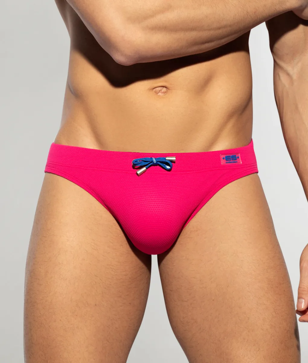 Turn up the heat with the ES Collection Pique Swim Brief, designed for a sleek, body-contouring fit that keeps you feeling confident in and out of the water. This low-rise swim brief sits perfectly on the hips, offering a sculpted silhouette with full back coverage. Crafted from premium pique-textured fabric, it adds a refined touch while ensuring breathability and quick-drying comfort. The contoured pouch enhances support and definition, keeping everything in place with a natural lift. A secure elastic waistband with subtle branding provides a stay-put fit while complementing the streamlined design. Whether lounging poolside or making a splash, the ES Collection Pique Swim Brief is a must-have for effortless style.