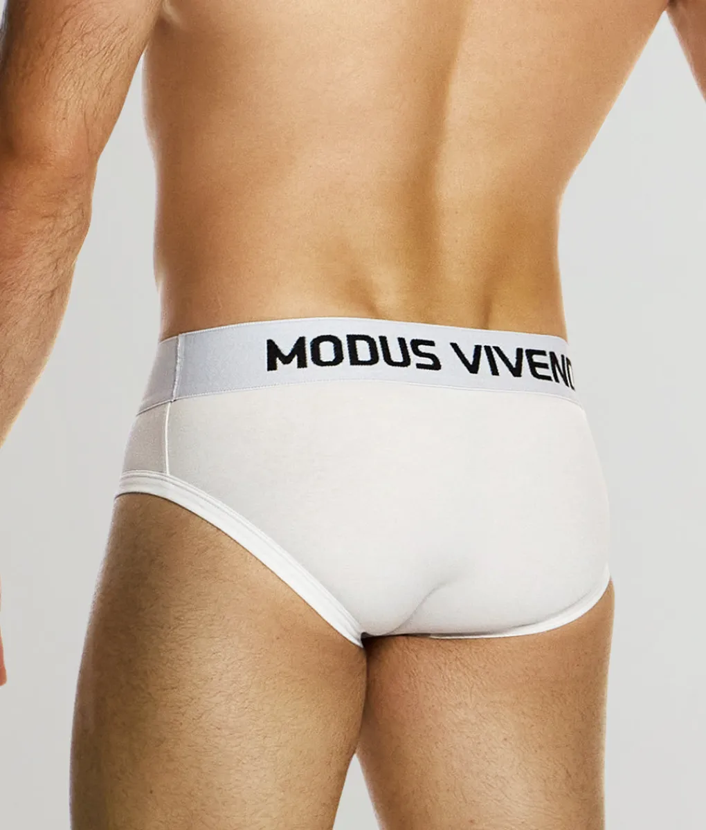 Effortlessly blending simplicity and sophistication, the Modus Vivendi Classic Brief is the perfect staple for your daily essentials. With a mid-rise cut that rests naturally on the waistline, this brief offers a sleek silhouette with moderate side coverage and a fully covered back for a polished, classic look. The soft, breathable fabric feels luxurious against the skin and keeps you cool, thanks to its moisture-wicking properties. A contour pouch delivers exceptional support and a subtle lift, making comfort and style a priority. The waistband is minimalist yet bold, featuring clean lettering and a no-roll design that stays in place all day. The Modus Vivendi Classic Brief is an essential for those who appreciate timeless quality and all-day wearability.