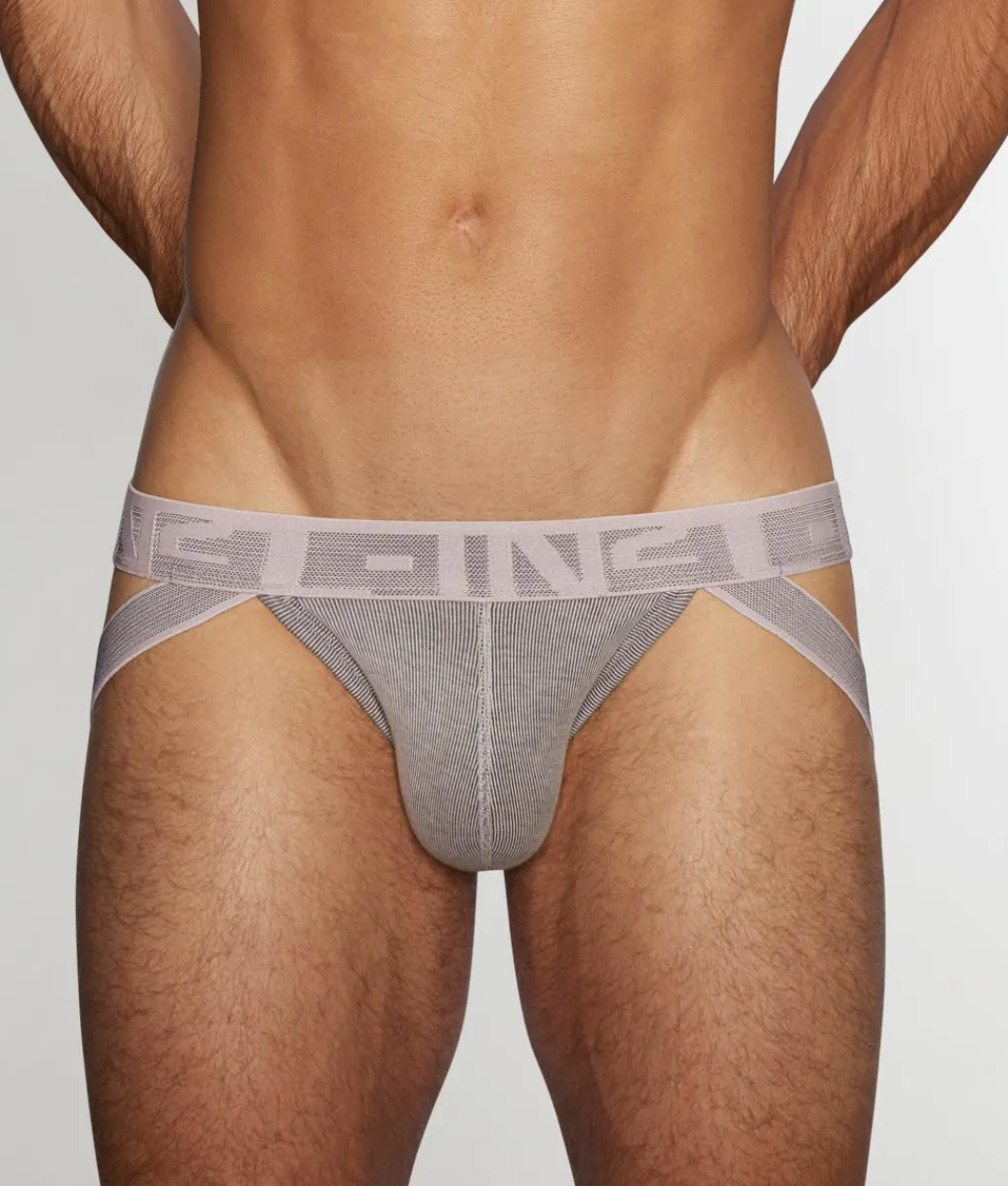 Turn up the volume on your underwear drawer with the C-IN2 Undertone Jockstrap, where classic athletic vibes meet modern-day comfort and design. This is a low-rise jockstrap, crafted to sit confidently below the natural waistline, showing just the right amount of skin while still keeping everything secure. The open back is held in place with sturdy, elastic straps that provide lift and support without digging in, while the front features a single-ply, contoured pouch that offers structure and shape with a subtle lift—no fly or gimmicks, just clean, sculpted support. Made from 100% cotton rib, the fabric is soft, breathable, and naturally moisture-absorbing, making it a dream to wear whether you’re at the gym or lounging at home. It feels cool against the skin and allows airflow where it matters most. The thick brushed elastic waistband delivers a snug, stay-put fit and showcases the C-IN2 logo in bold yet tasteful lettering, adding just the right touch of branding flair. Subtle tonal contrasts in the ribbed cotton give the C-IN2 Undertone Jockstrap depth and texture that stands out without shouting. If you’re looking for a jockstrap that’s as comfortable as it is confident, this is the one to wear loud and proud.