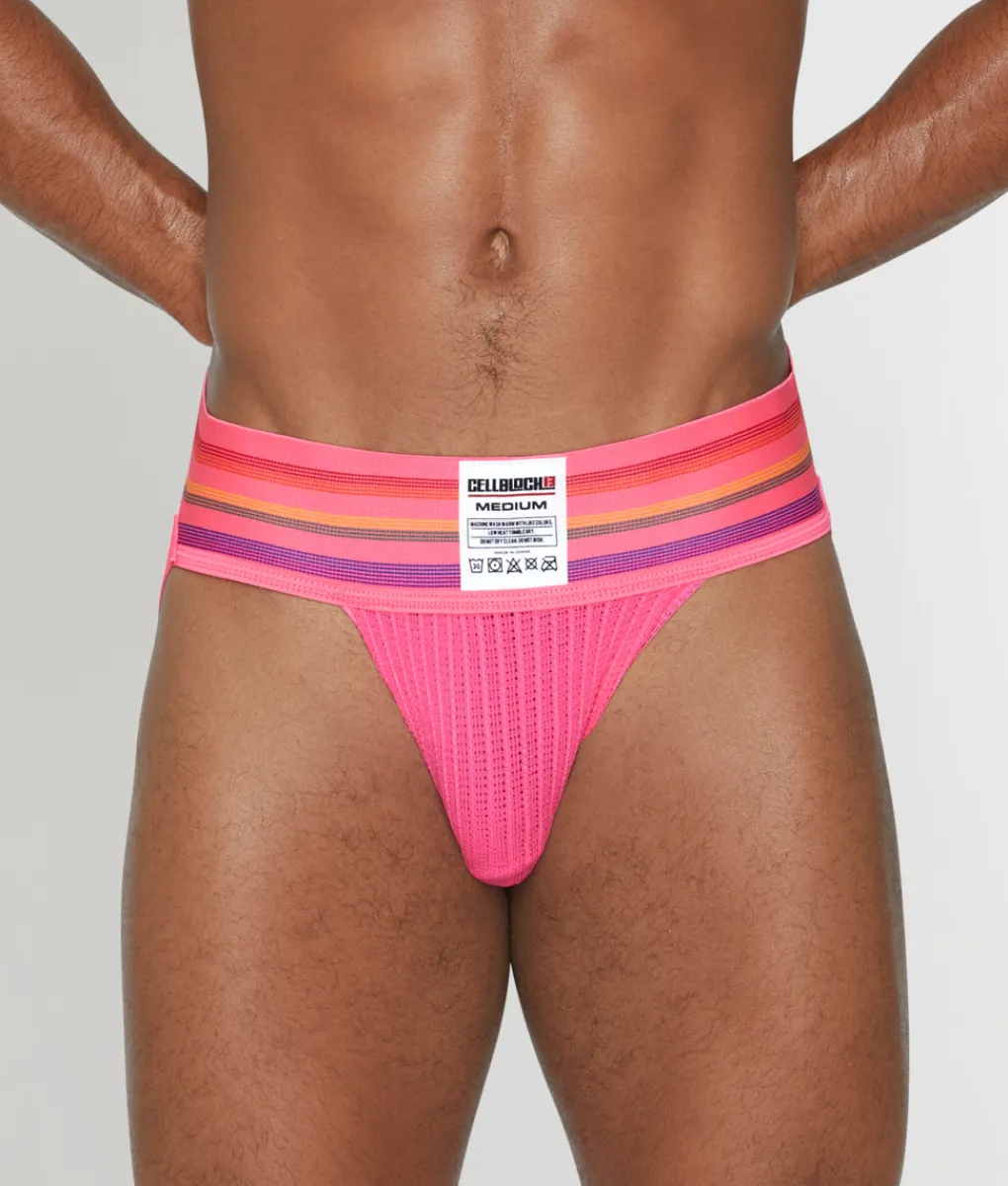 Finally, a jockstrap as vivacious as you are. With its three-inch waistband, the mid-rise fit is ultra-flattering and leaves little to the imagination — just the way we like it. The woven mesh pouch cradles and draws attention to your member, while sturdy inch-long straps frame your butt to perfection.