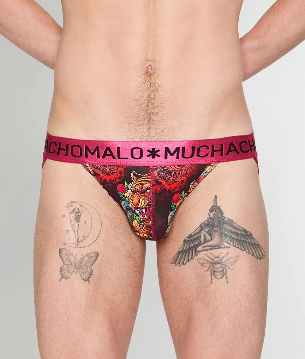 Unleash your predatory confidence with the Muchachomalo Tiger Jockstrap, where fierce tiger-inspired design meets contemporary comfort in this expertly crafted essential. This mid-rise jockstrap sits perfectly at your natural waistline, featuring high-cut legs that offer minimal coverage while maximizing style and freedom of movement. Meticulously crafted from premium 48% cotton, 48% modal, and 4% elastane fabric blend, this jockstrap feels luxuriously soft against your skin while delivering exceptional stretch and recovery for all-day comfort. The breathable cotton-modal material naturally wicks moisture away from your body, keeping you fresh and dry throughout your most active days, while the modal provides silky smoothness and the elastane ensures that perfect stretch for unrestricted movement. The expertly designed contour pouch provides exceptional support and lift, with an innovative design that naturally enhances your shape while ensuring maximum comfort with every movement. The thick, no-roll waistband features bold MUCHACHOMALO lettering that adds an extra touch of contemporary flair to your underwear collection. The back straps are crafted with medium thickness for optimal comfort and secure fit without digging in, perfectly complementing the striking fierce tiger design elements. Elevate your underwear drawer with the wild sophistication of the Muchachomalo Tiger Jockstrap.