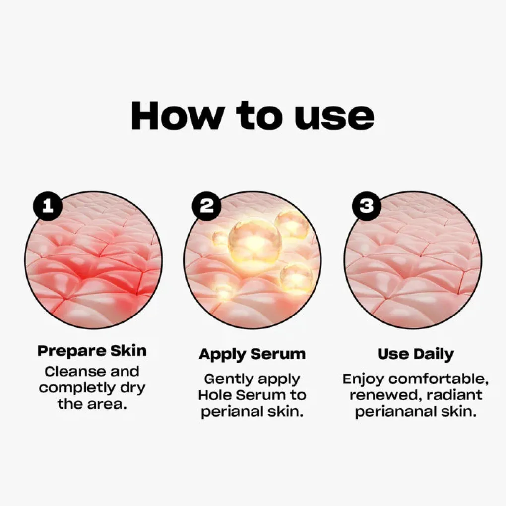 Hole Serum is a super skin-nourishing cosmetic formula, not a magic potion—put the taboo behind you and confidently show your ass to your doctor if you’re unsure about anything.