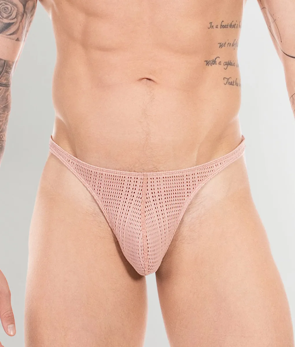 The contoured pouch provides supportive shaping and a natural lift without bulky padding or restrictive seams, offering comfort with a sculpted look. In the back, the thong strap is slim yet sturdy, fitting snugly between the cheeks for a confident, barely-there feel without digging in.