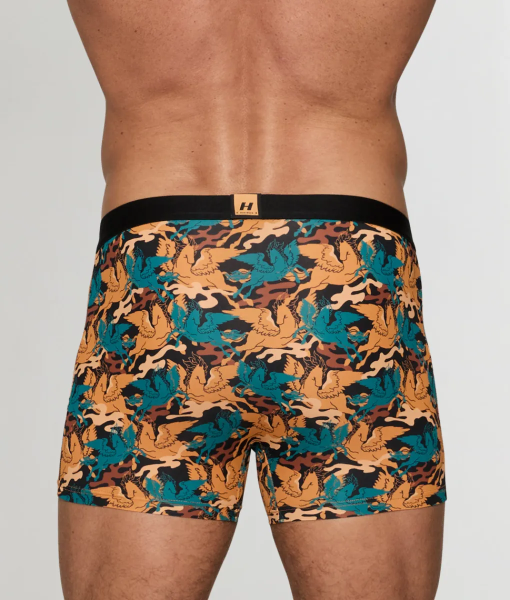 Looking for a trunk that blends comfort and style effortlessly? The Hunk Pegasus Trunk hits all the right notes with its low-rise design that sits perfectly on the hips, offering a modern high-cut leg and full back coverage. Crafted from a breathable, moisture-wicking fabric, it feels soft and cool against the skin, making it ideal for everyday wear. The contoured pouch provides a supportive lift, enhancing your natural shape while keeping everything secure. A bold, thick waistband featuring the iconic Hunk logo delivers a slimming effect around the waist, making you feel both confident and comfortable. With contrasting details that add an extra touch of flair, the Hunk Pegasus Trunk is where functionality meets fashion.