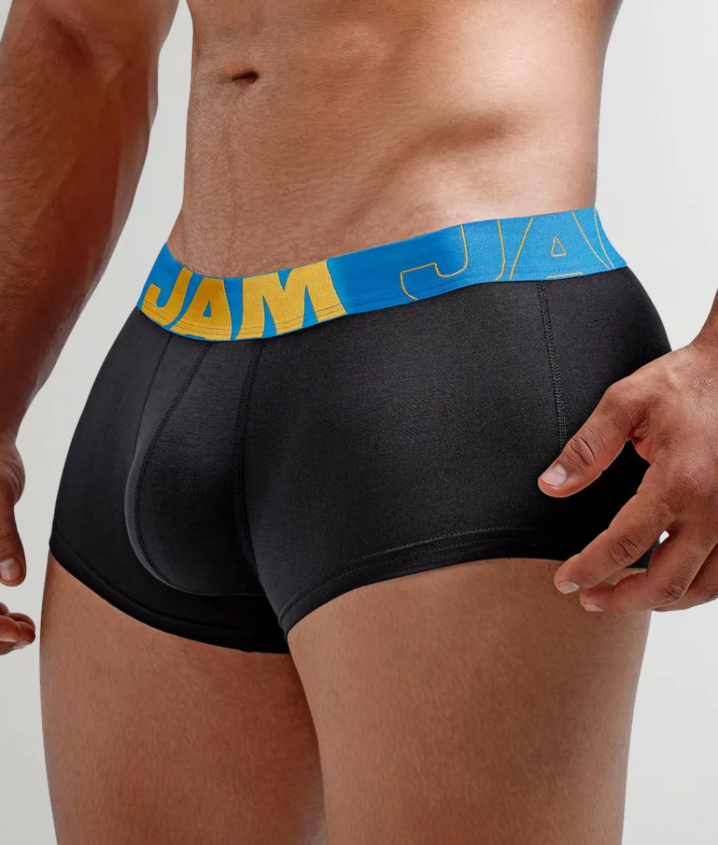 Crafted from a soft, breathable fabric blend, it’s moisture-wicking to keep you cool and dry, whether you’re lounging or out on the town. The contoured pouch provides natural support and a subtle lift, while the wide, no-roll waistband ensures a secure, stylish fit. Finished with eye-catching contrast details, the JAM End of Summer Trunk is the perfect way to transition into the cooler months without sacrificing style or comfort.
