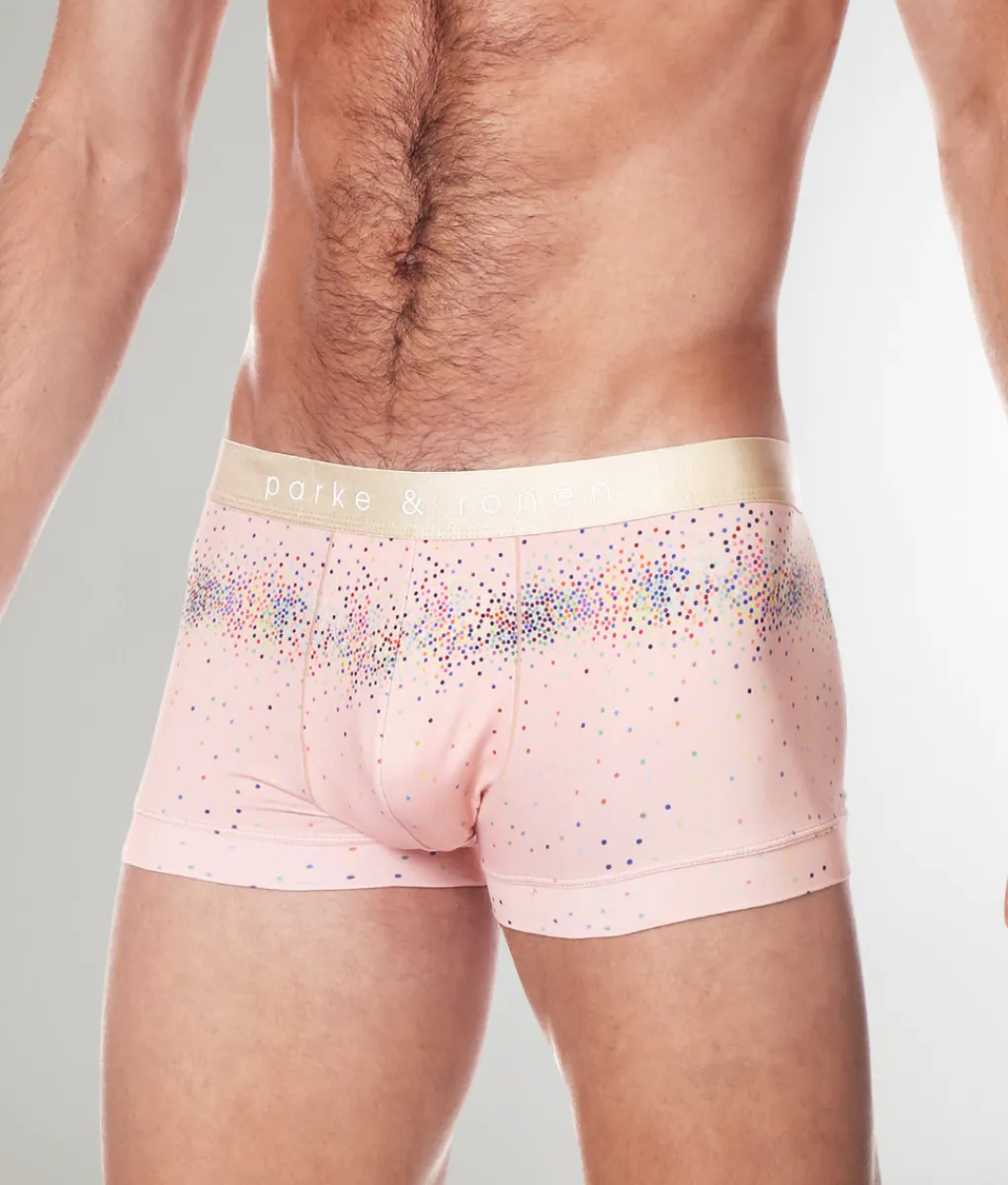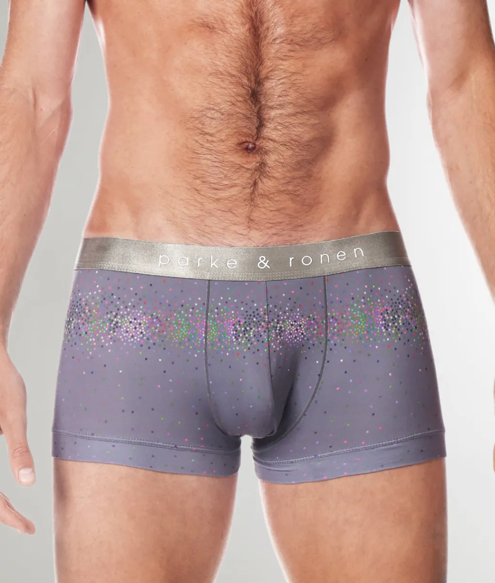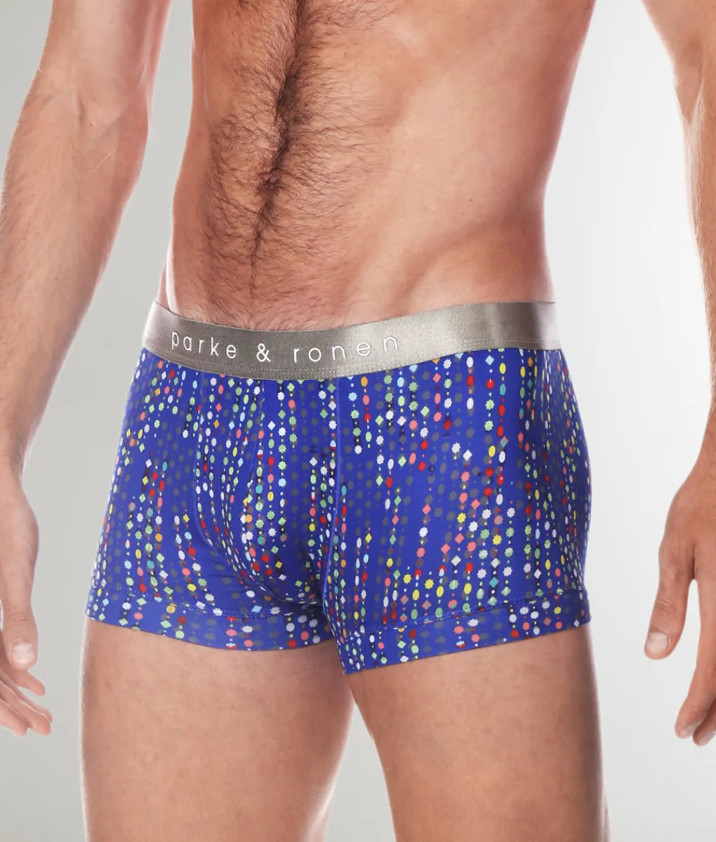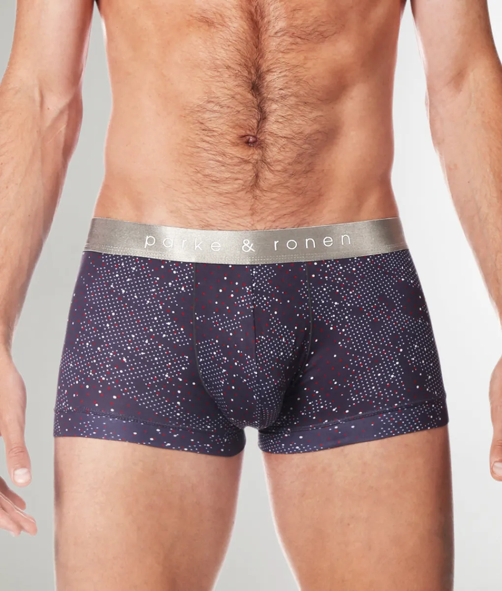 Bring a touch of luxe to your essentials with the Parke & Ronen Printed Low-Rise Trunk, where comfort meets standout style. Sitting just below the hips, this low-rise trunk offers a modern, tailored fit with a mid-length inseam for balanced coverage that’s perfect for everyday wear. Crafted from a silky, breathable fabric, it feels smooth and cool against the skin while wicking away moisture to keep you dry. The contoured pouch provides support and lift, ensuring all-day comfort and a flattering fit. A slim, no-roll waistband with subtle branding complements the playful, eye-catching print, making the Parke & Ronen Printed Low-Rise Trunk a perfect blend of sophistication and flair.