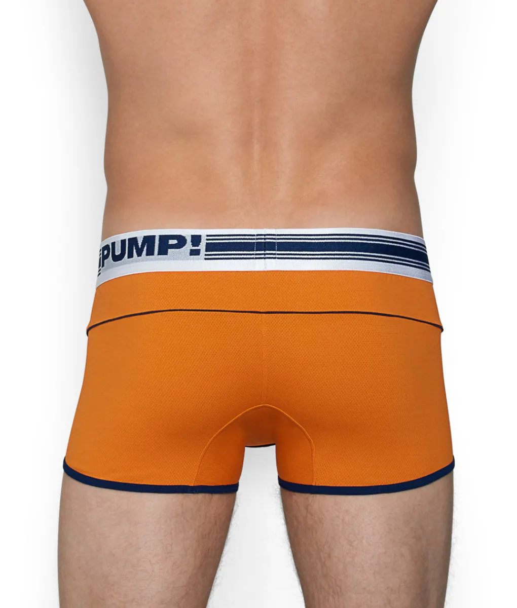 Go the distance in the cool and comfy PUMP! Varsity Free-Fit Trunks.