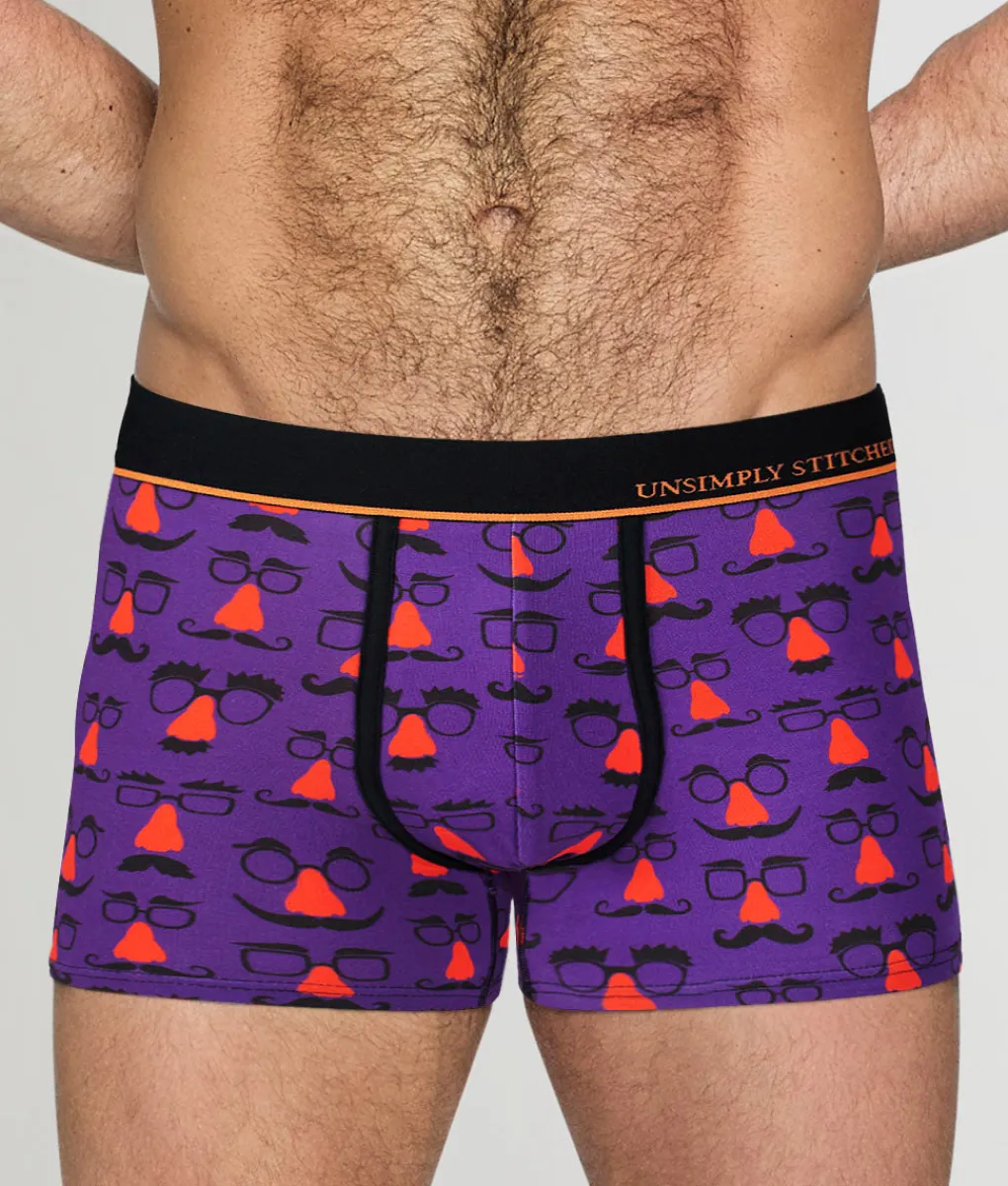Keep it undercover but never underwhelming with the Unsimply Stitched Master of Disguise Trunk – a playful print with a fit that doesn’t hide a thing. This trunk is made for guys who know the power of a subtle statement, blending Unsimply Stitched’s signature quirky flair with everyday comfort and confidence. The body-hugging cut sits low on the hips with snug legs that stay in place without riding up or bunching. It’s a perfect blend of fun and functional, whether you’re laying low or letting loose.